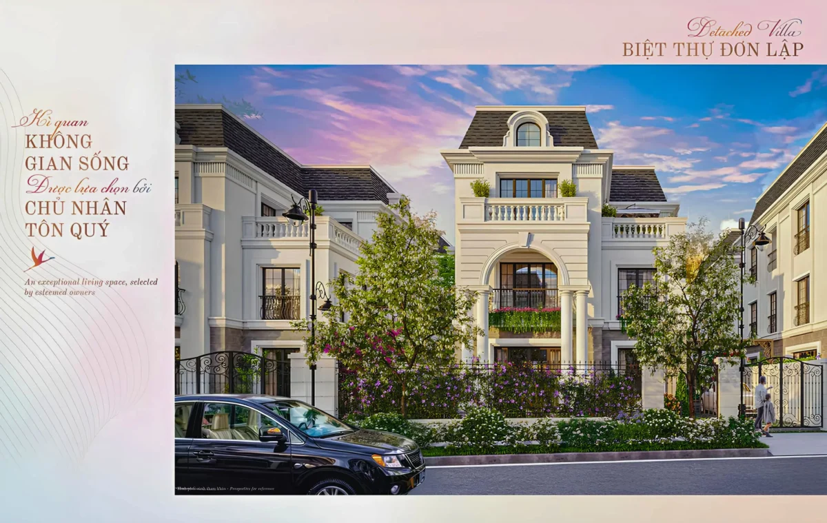 17 căn BIỆT THỰ ĐƠN LẬP, diện tích 15×20 và 20×15, xây sẵn 3 tầng, hoàn thiện theo phong cách Pháp cực sang trọng. Thiết kế: 4 phòng ngủ, 4 nhà vệ sinh, bếp, phòng thờ, phòng sinh hoạt chung, sân phơi, chỗ đậu xe ô tô và 4 mặt sân vườn thông thoáng.