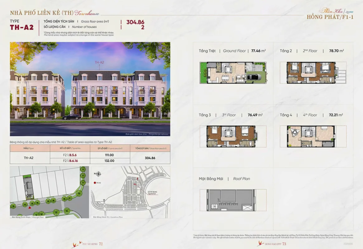 NHÀ PHỐ LIÊN KẾ VƯỜN (94 căn):6x18x5, căn góc: 11×18.5, diện tích đất từ: 111 – 292m2 xây sẵn 4 tầng.