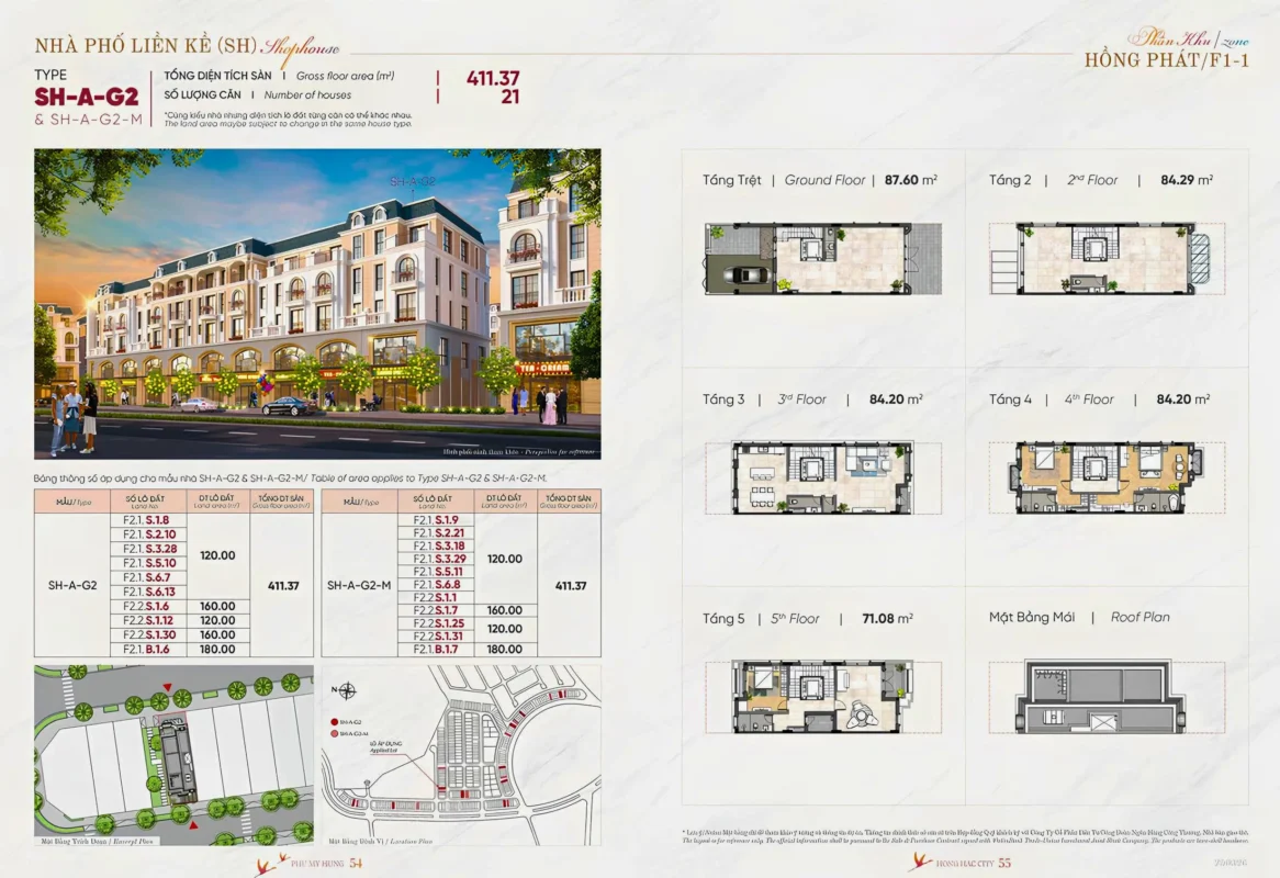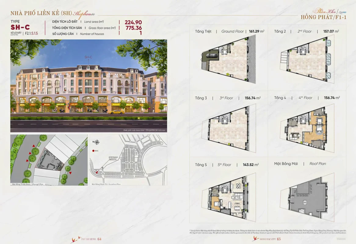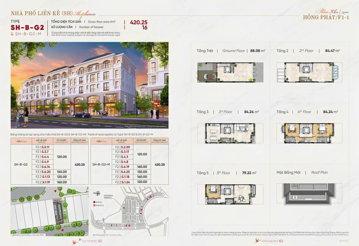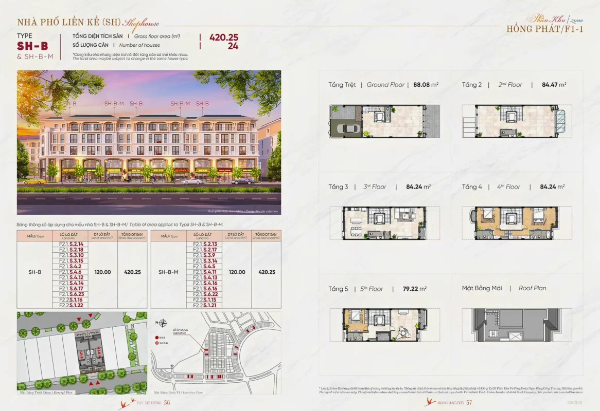 SHOPHOUSE 2 MẶT TIỀN (170 căn):diện tích: 6×20, 8×20, 10×20, diện tích đất từ: 120 – 275m2 xây sẵn 5 tầng.